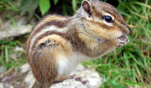 Young chipmunks, usually born in March, do not leave their nest or borrow until they are approximately half grown at two months of age. At that time they begin foraging for food with their mother.